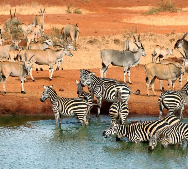 The drive will take you through a scenic route, where you can spot Kenya’s vast open plains, rugged hills, and the unique flora and fauna that make this part of the world so special. Tsavo East, renowned for its striking red earth, is one of the largest national parks in Kenya, brimming with wildlife and dramatic landscapes, making it the perfect start to your Kenyan adventure.